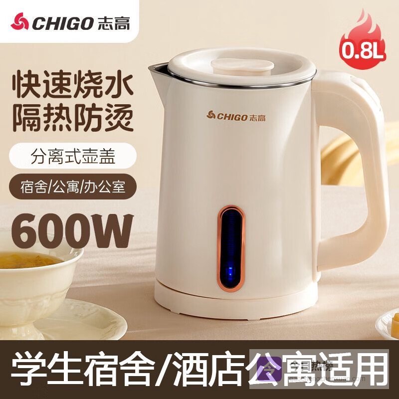 志高迷你电水壶宿舍专用烧水壶0.8L低功率600W不跳闸开水壶便携式小型电热水壶家用旅行小功率办公室 0.8L 600W小功率【自动断电双层防烫】¥