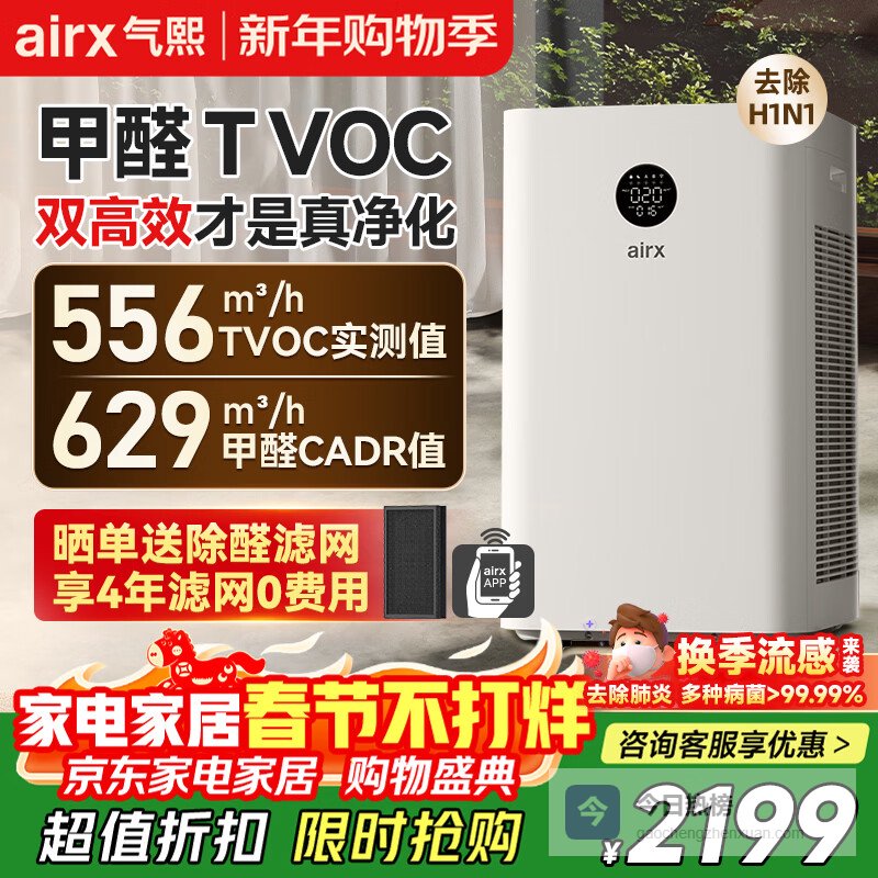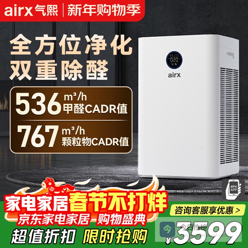 【京东自营】气熙空气净化器除甲醛TVOC除菌空气净化机去除甲流雾霾异味甲醛数显净化多重污染A10SE¥