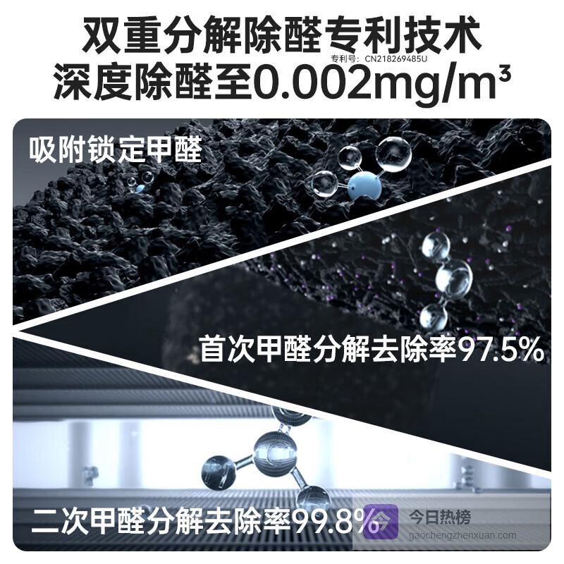 1️⃣高效甲醛净化:独特的双重分解技术可以高效去除室内甲醛,保障家居环境安全。通过层层过滤与催化,去除率最高可达99%。不再担心装修后空气中的有害物质,营造健康舒适的生活空间。