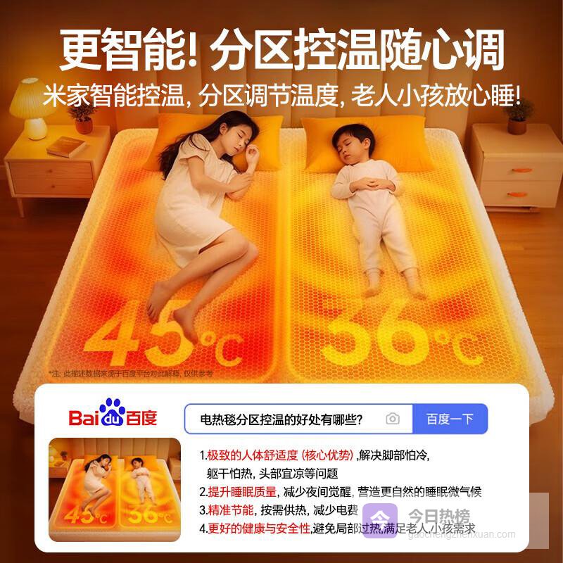 1️⃣双人双控设计:双人双控的调温设计,满足每位用户不同的温度需求,为家庭提供全方位的舒适感。不再需要为了温度的问题而争论,每个人都可以享受独特的温暖体验。