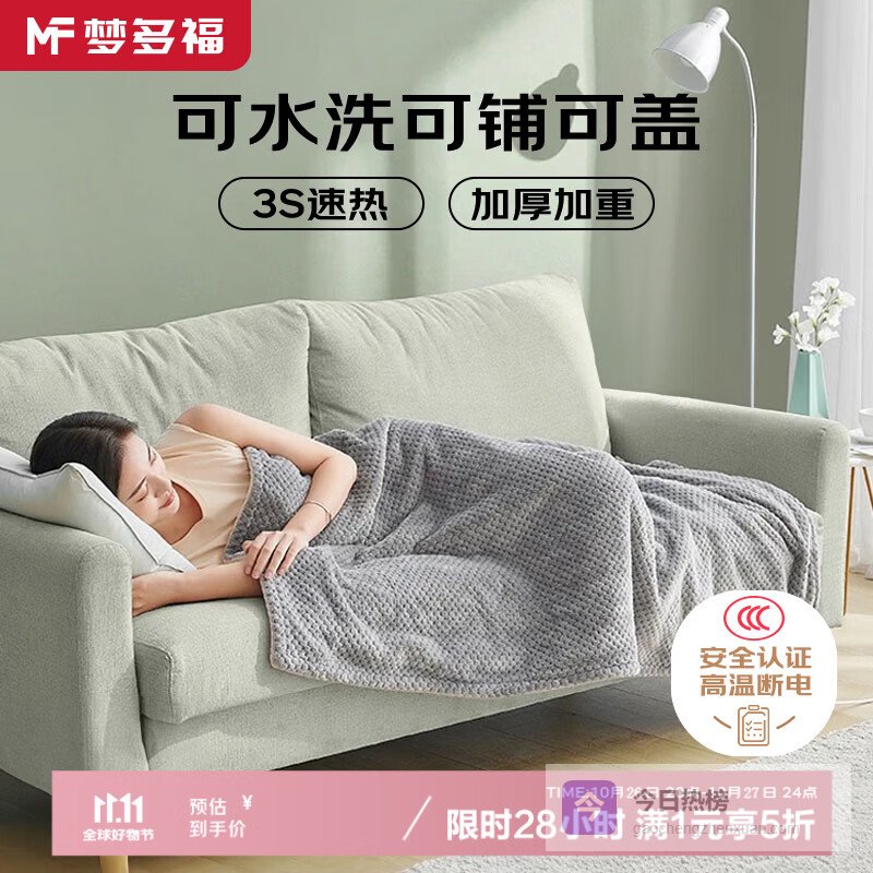 【京东自营】梦多福【高温断电】单人电热毯披肩毯电热盖毯暖身毯盖腿办公室加热毯子¥