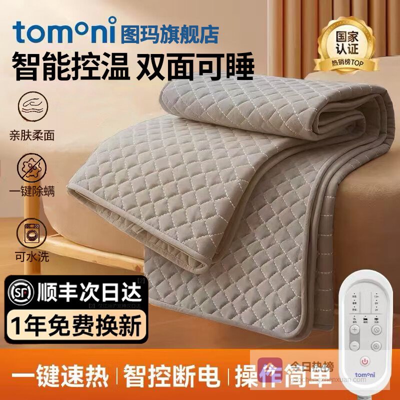 【品牌直营】TOMONI图玛电热毯双面可睡双面加热单双人床家用宿舍可控温定时水洗大床款180*200¥