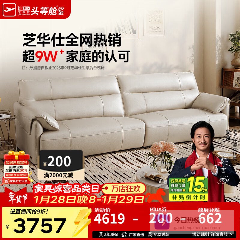 第三款:芝华仕国民金典30653电动真皮沙发