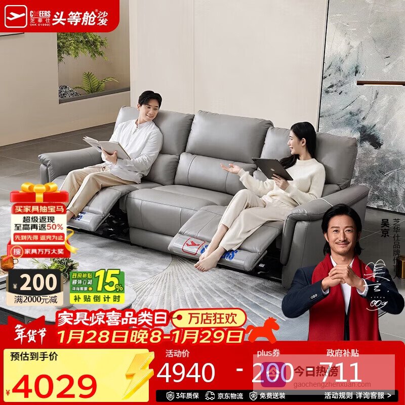 【京东自营】芝华仕头等舱国民金典30653真皮零靠墙电动沙发灰2.28m现代简约客厅沙发¥