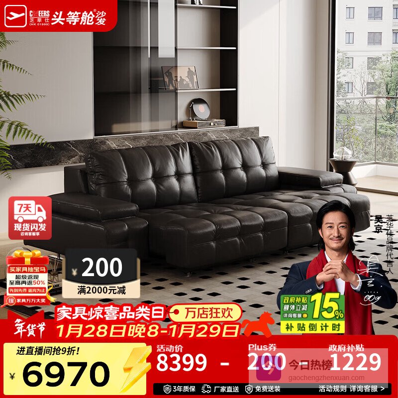 【品牌直营】芝华仕头等舱智能椅真皮沙发客厅大黑牛意式沙发床电动沙发30567劳伦斯【沙发床/无线充】¥