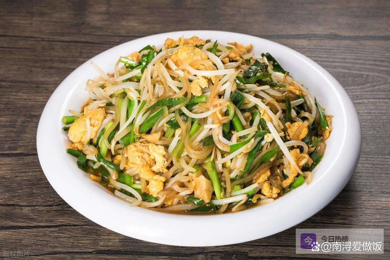 所需食材: 绿豆芽200克、韭菜100克、菠菜150克、红薯粉条1小把(提前泡软)、鸡蛋2个、大葱1段、大蒜3瓣、生抽2勺、蚝油1勺、盐适量、鸡精少许、食用油适量。