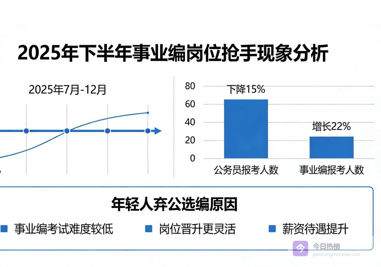 弃公选编,从来不是年轻人妥协,而是更理性的选择。他们不再被“公务员”的名头绑架,明白不管是公考还是事业编,稳定才是核心,与其死磕难考又内卷的公务员,不如转头选择难度低、压力小、待遇优的事业编。2025下半年的备考潮流已经证明,年轻人的选择越来越务实,能上岸、过得舒心,才是体制内备考的终极目标。
