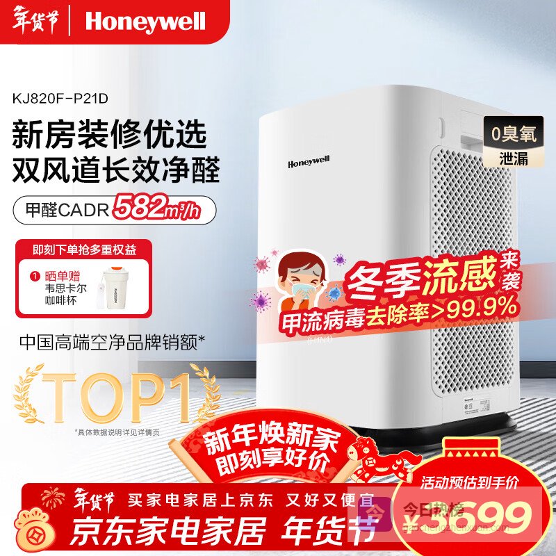 霍尼韦尔(Honeywell)空气净化器家用除甲醛除雾霾除PM2.5智能净化器除菌除甲流病毒 KJ820F-P21D¥
