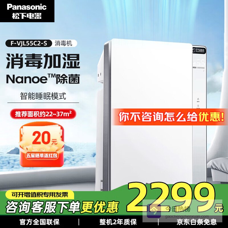 松下(Panasonic)空气净化器/空气消毒机 加湿除甲醛消毒除菌家用卧室智能除味大面积净化空气过滤PM2.5过敏源 【37㎡基础款】消毒加湿净化器F-VJL55C2¥