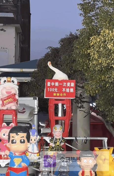 安徽一套大鹅摊位的大鹅因其“摇头晃脑”躲圈的动作火了,网友笑称,“鹅是有股份吧,这么卖力难怪套中了不给鹅”。在其走红的视频中,大鹅坐在凳子顶部,脖子左右摆动躲圈,胸前挂的牌子上写着“套中鹅一次奖励100元,不给鹅。谢谢合作!”