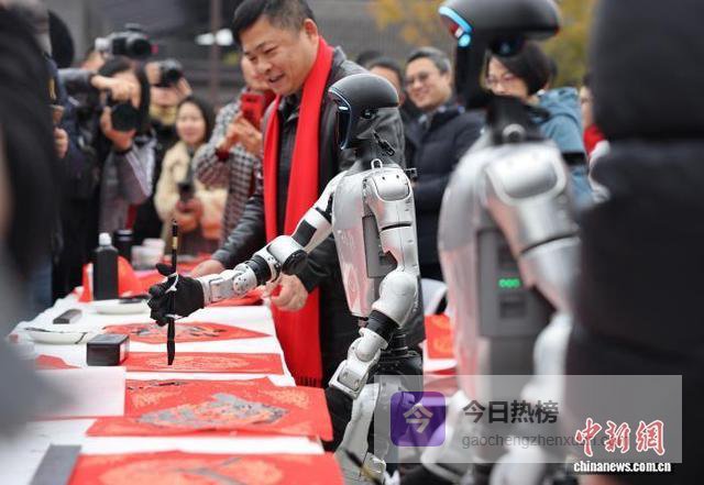 图为“成都造”机器人在青白江城厢古城为民众书写新春祝福。记者 张浪 摄