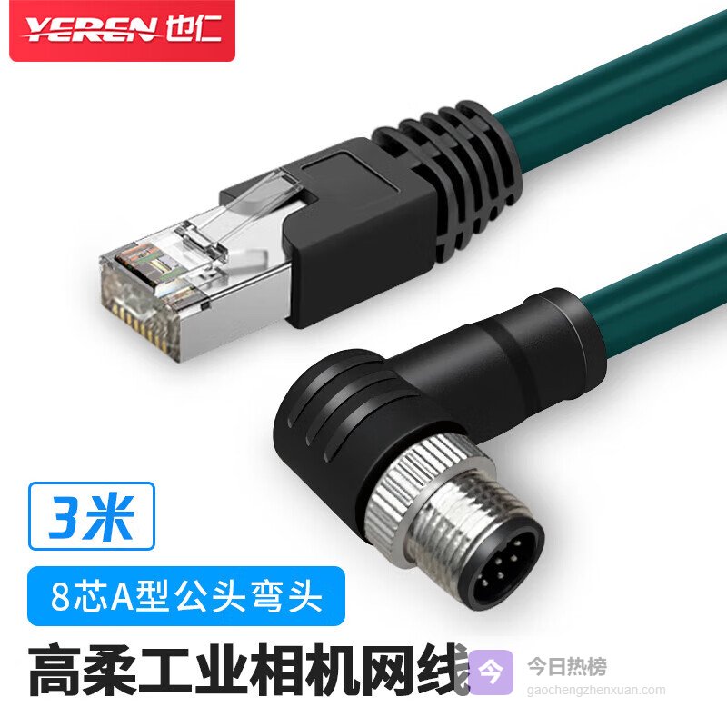 也仁线缆哪个型号好?第一款:也仁M12转RJ45编码线 8芯公弯头