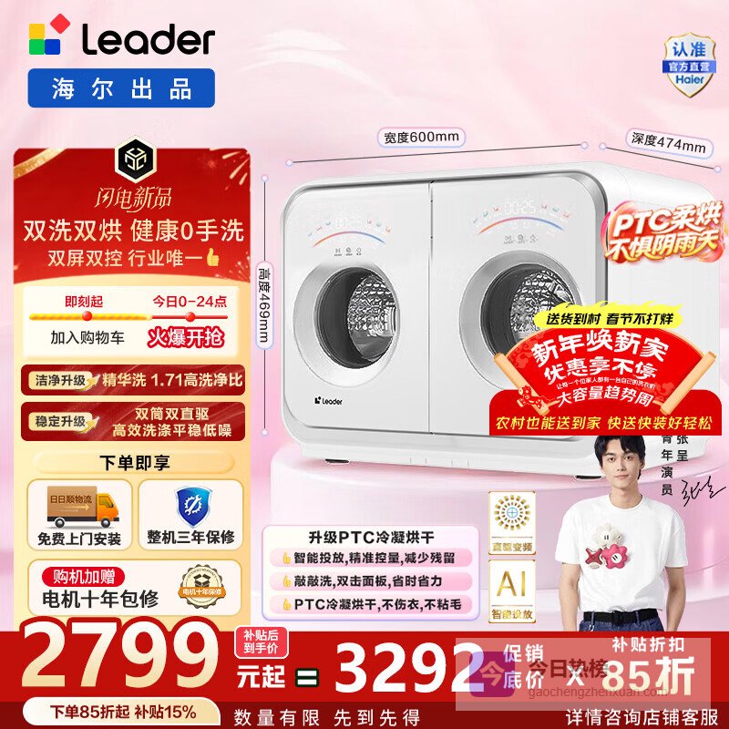 统帅(Leader)海尔智家出品 懒人内衣裤洗衣机洗烘一体机 滚筒分桶2KG迷你双筒双屏全自动双筒智控双桶桌面0手洗 【双筒分区洗】ZHBD671WU1 双筒¥