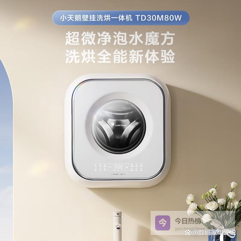 五、小天鹅洗烘一体:这台洗衣机不仅能洗衣服,还能烘干,操作起来特别方便,洗完衣服直接烘干,省掉中间换设备的麻烦,尤其适合忙碌的家庭或没有烘干空间的地方。