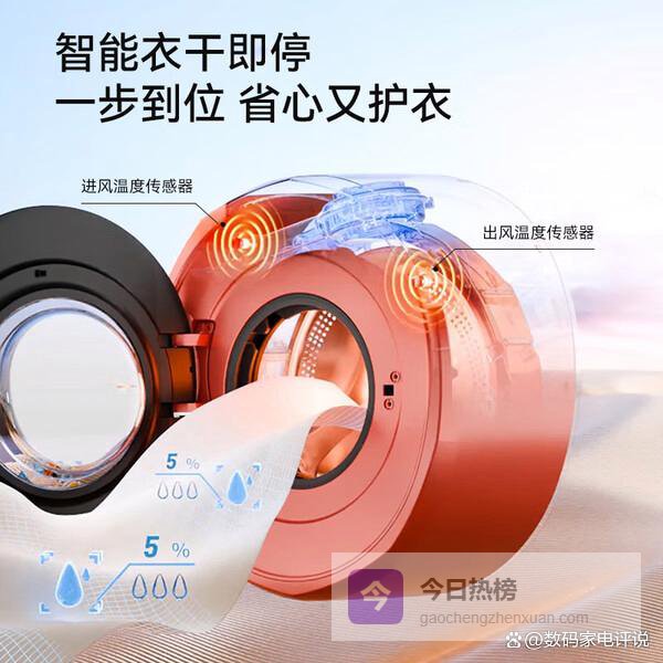 智能烘干省事:配备冷凝烘干,还能自动感应衣物干湿状态,不用担心烘得过头,衣物保持柔软。放在阳台或厨房,烘干衣服又快又方便,尤其是在潮湿天气里,省去了晾晒等待的时间。