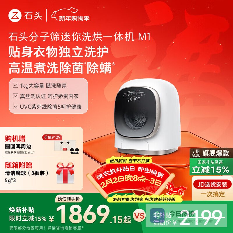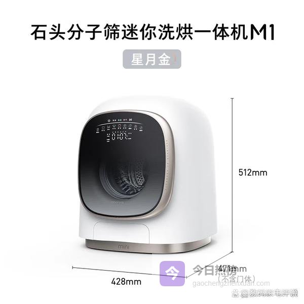 石头分子筛迷你洗烘一体机 M1 星月金 1kg 全自动儿童内衣滚筒带烘干洗衣机 XQGH010RR02¥