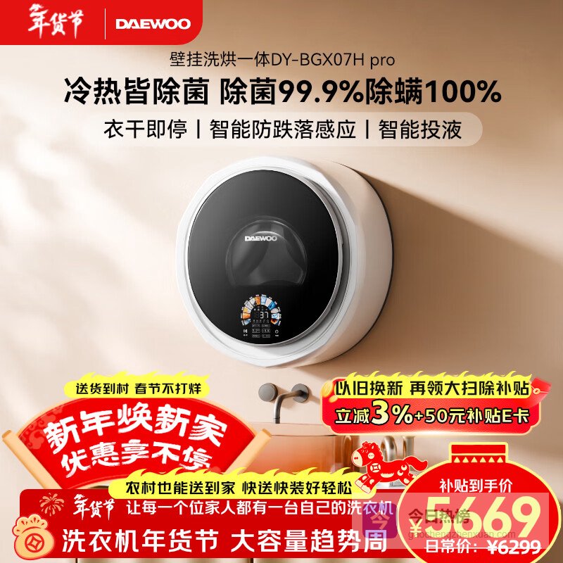 大宇(DAEWOO)全自动滚筒壁挂洗衣机3KG婴幼儿童超薄洗衣机家用迷你小型内衣内裤洗烘一体机BGX07Hpro白¥