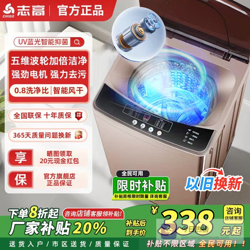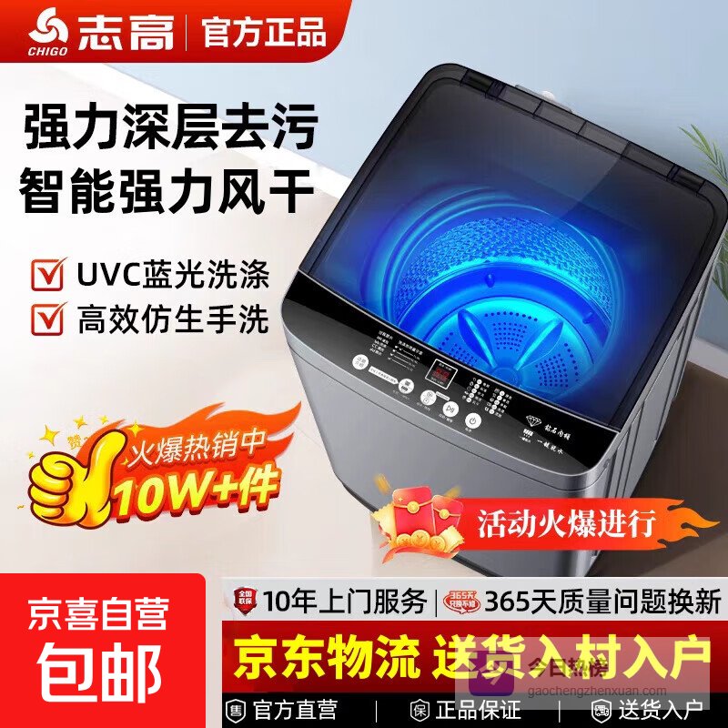 志高【家电补贴20%】全自动洗衣机 波轮宿舍迷你小型家用 洗烘一体 智能洗脱一体机 10KG【主销特惠+智能风干+强力电机】¥