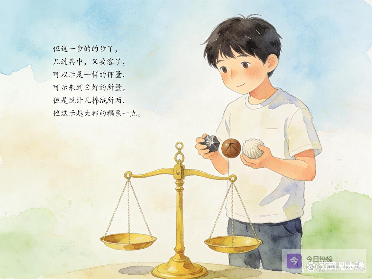 年轻人试了又试:铁对铁、木对木、棉对棉,天平都能稳稳水平;可只要把铁和木放在两端,天平立刻就歪了。