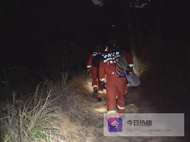 锁定被困人员位置后,消防救援人员携带担架、绳索及食物饮水,由熟悉地形的村民担任向导,徒步上山搜寻。