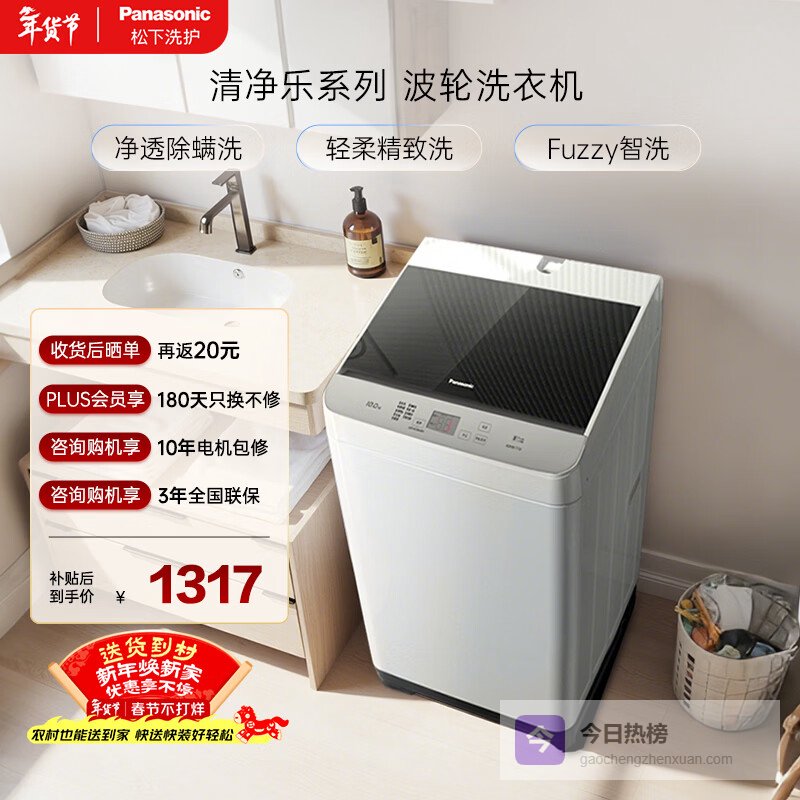 推荐入手:松下智能波轮洗衣机10公斤 XQB100-TSWTS