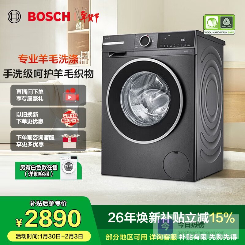 【品牌直营】博世【除菌除螨】10KG变频滚筒洗衣机全自动家用大容量羊毛洗护三合一降噪夜间洗冲锋衣洗【¥