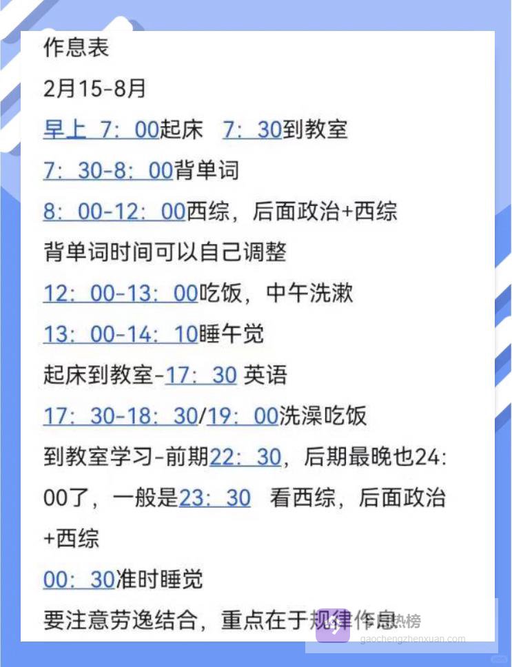 2月15日—8月:每天10小时,西综6.5h+英语3.5h