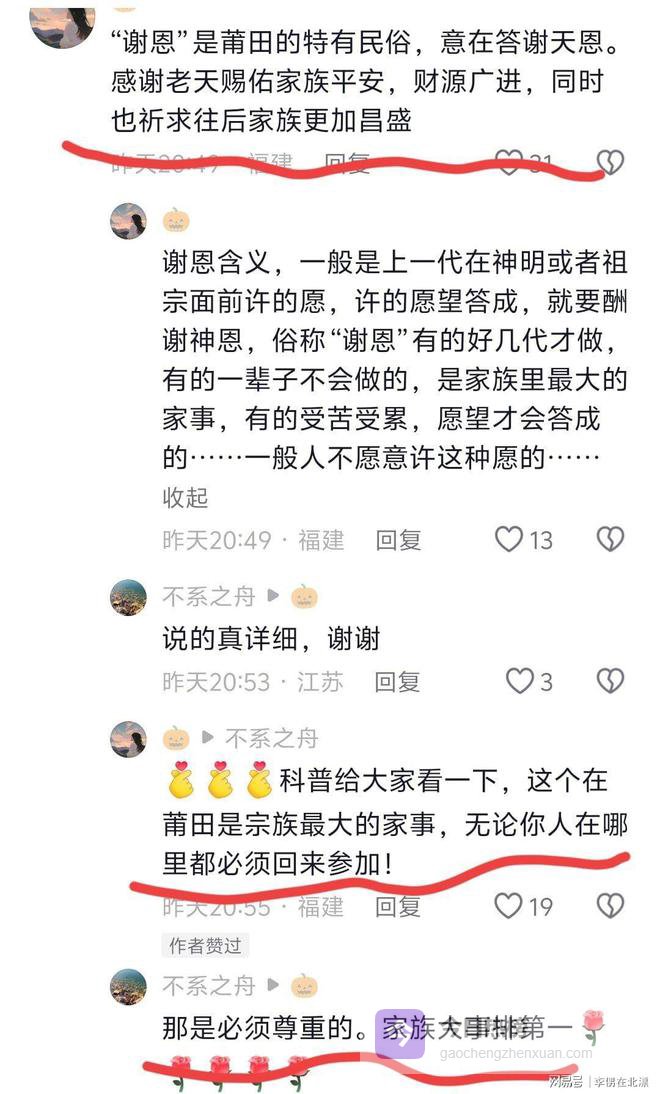 瑾汐新发视频,他们家族举行谢天恩还愿仪式,瑾汐将整个仪式的过程用镜头记录了下来。谢恩是莆田的特有民俗,意在答谢天恩,这是莆田宗族最大的家事,无论人在哪里,都必须回来参加。