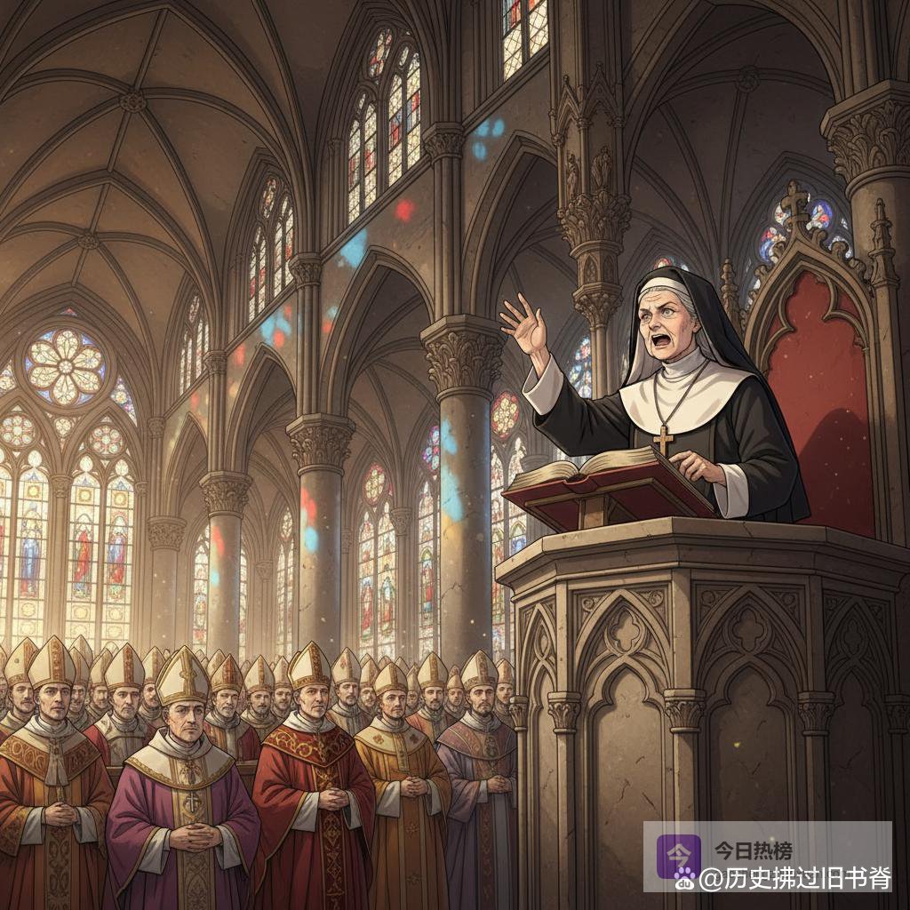 在科隆大教堂,她当着满堂主教的面,痛斥教会的腐败:"你们像粉饰的坟墓,外表光鲜,内里却充满死人的骨头。"几个主教愤怒地离席,但更多人低下了头。在特里尔,她对着数百名僧侣说:"你们把修道院变成了舒适的养老院,忘记了贫穷和谦卑的誓言。"她的声音不大,但穿透力惊人,每个字都像钉子一样扎进听众的心里。