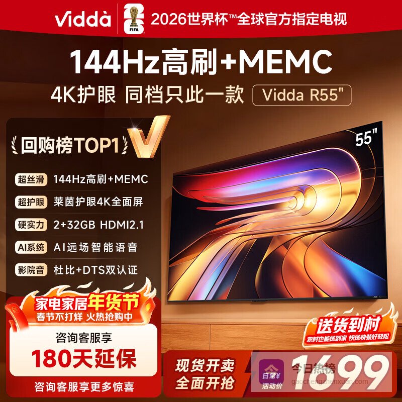 【京东自营】Vidda海信电视55英寸R55一级能效144Hz高刷2+32G以旧换新国家补贴游戏液晶¥
