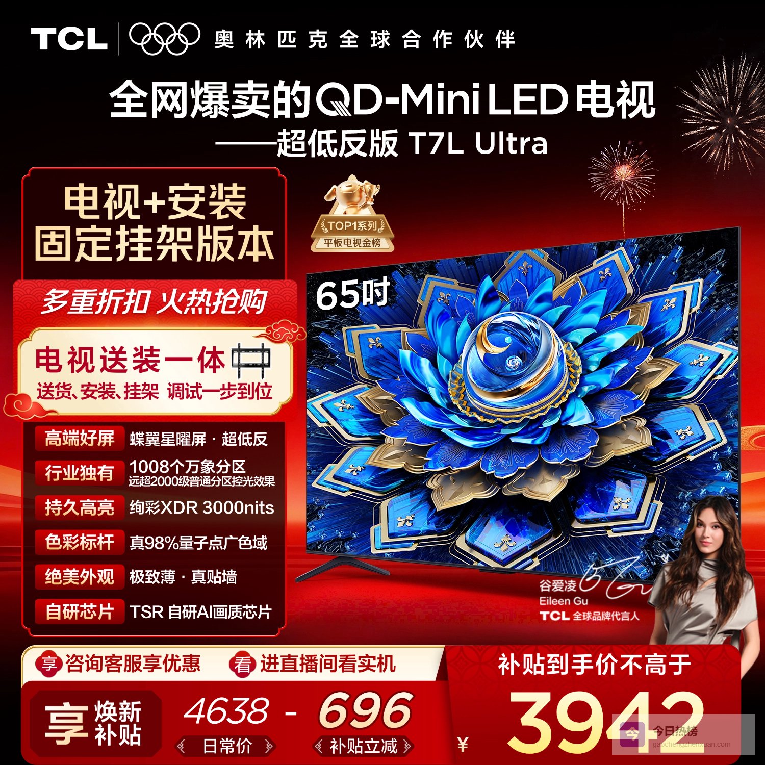 【京东自营】TCL65T7LUltra包安装版【固定挂架送装一体】65英寸QD-MiniLED电视T¥