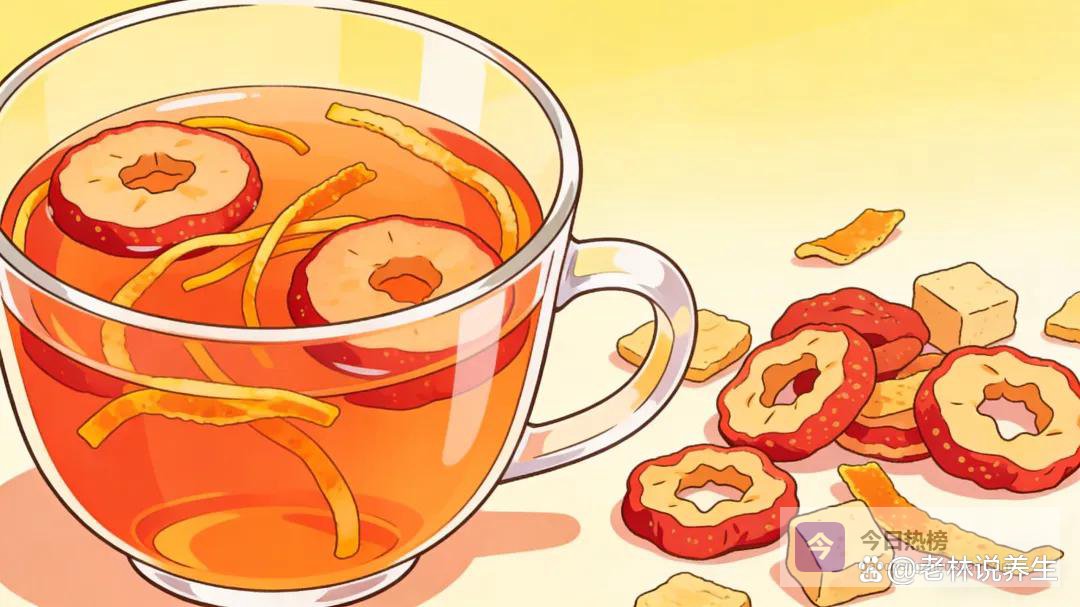 山楂干10克,陈皮5克,冰糖适量;沸水冲泡,代茶饮;