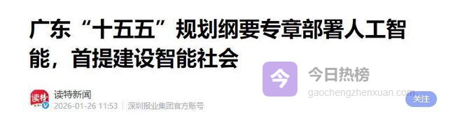 参考资料:读特新闻《广东“十五五”规划纲要专章部署人工智能,首提建设智能社会》