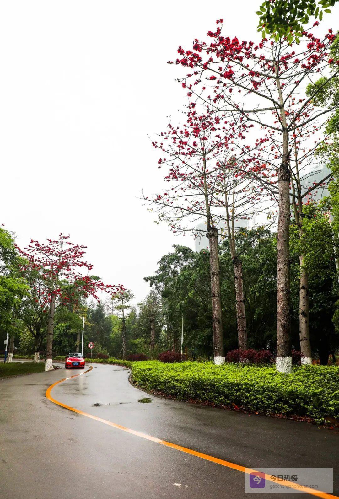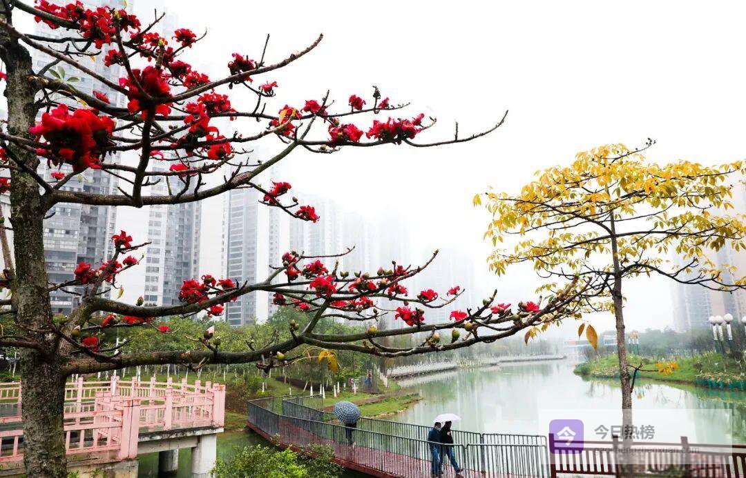 连日阴雨没能拖住春天的脚步,反而让来宾多了层朦胧滤镜。滨江北路一带,木棉与雨丝共舞,花瓣挂珠,远看像一幅刚收笔的水墨长卷;水城边的石板路上,行人撑伞缓行,抬眼便是“几树半天红似染”,连摄影师都省了烟饼——天然的仙气自带滤镜。