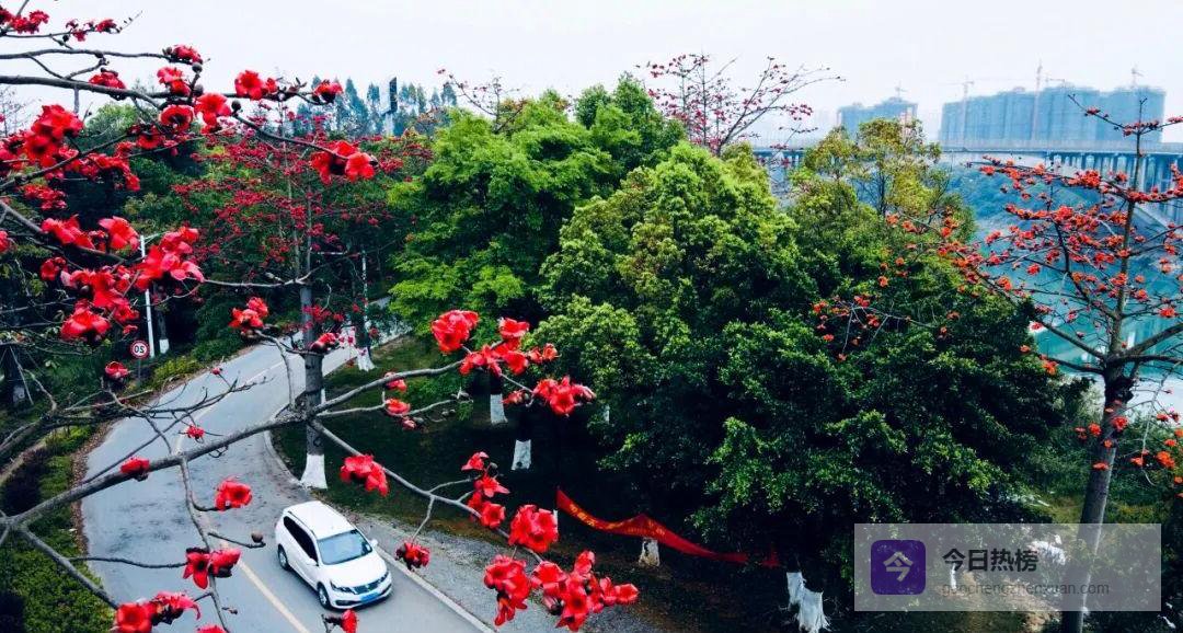 从桂中水城到普通街巷,木棉的硕大花朵把灰褐色的枝干瞬间点亮,像一支支火把举过头顶,也像乐队奏响的春天号角。你无需刻意寻找,拐个弯就能撞进一片流霞般的红——那一刻,你会相信“艳丽”二字原来可以如此高调又如此动人。