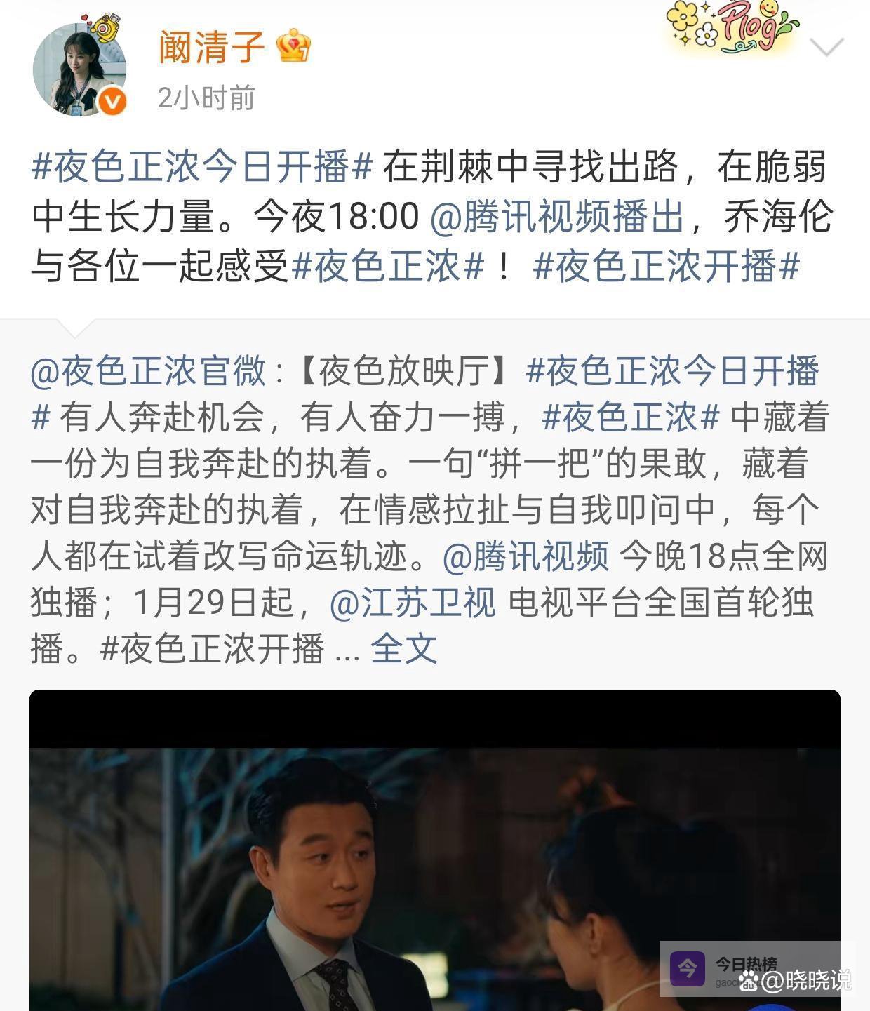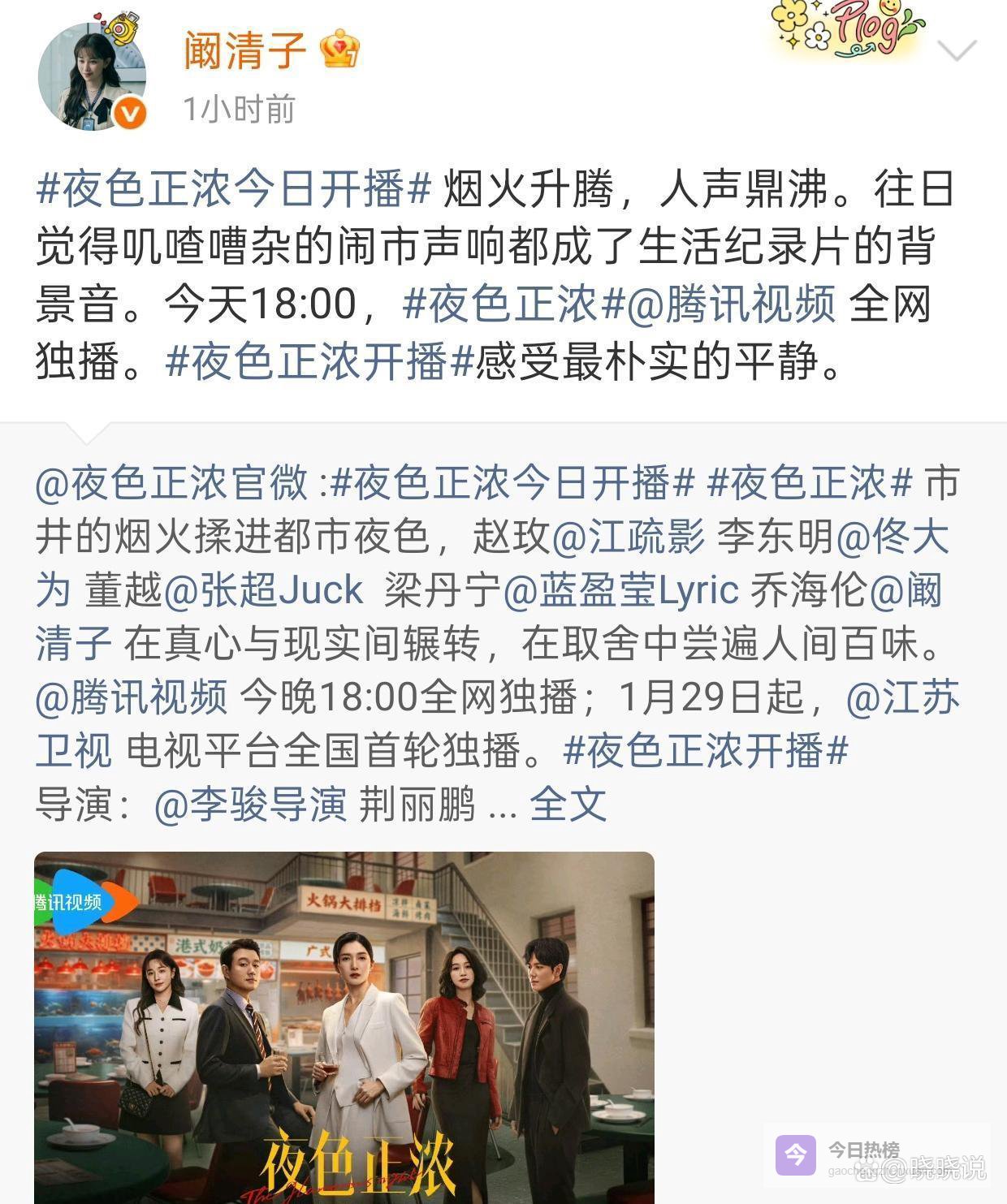 这次她一口气发了四条,内容很统一,都在推她那部叫《夜色正浓》的新剧。