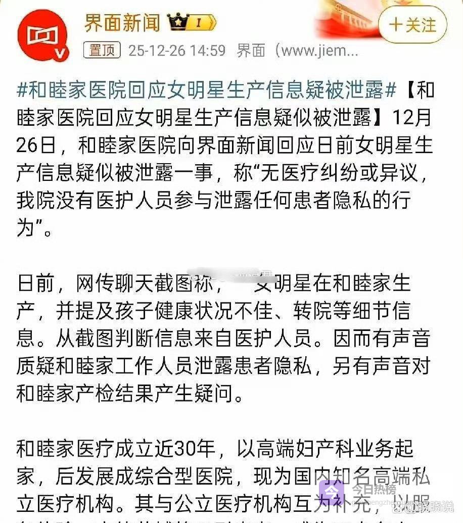 一个是关于她生产的情况。之前有过一些不太好的传闻,但和睦家医院后来发了声明。