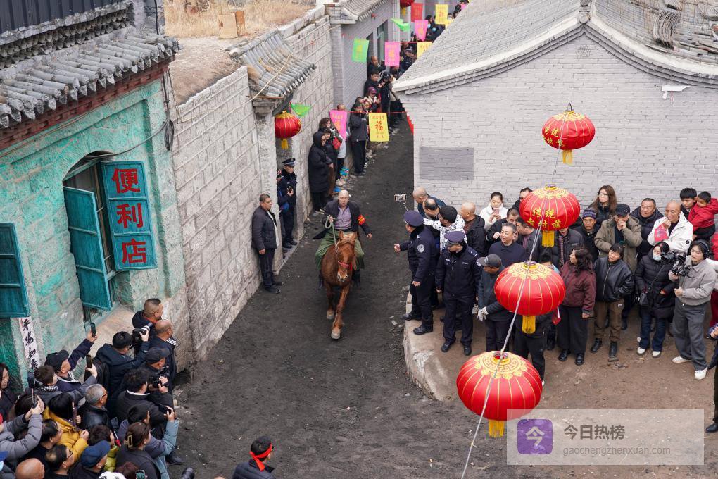 3月4日,农历正月十六,这个距离娘子关仅6公里的小山村,迎来了一年中最热闹的时刻,村中那条长约400米、宽不足4米的青石古巷上,里三层外三层挤满了人。沿路民房的台阶上、门槛上,甚至屋顶上,都早已站上了不请自来的看客,主人家却也毫不在意:“今天这个大日子,大家一起热闹热闹!”