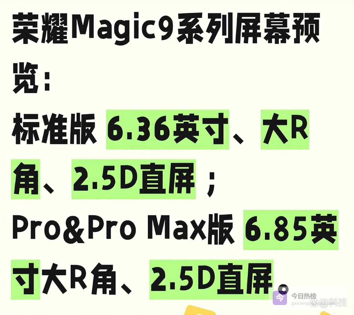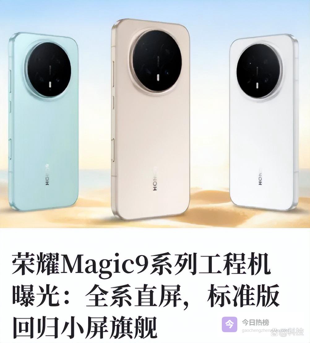 最新消息显示,荣耀手机的荣耀Magic9系列,也会全系转为直屏,其中,荣耀Magic9是6.36英寸直屏,荣耀Magic9 Pro和荣耀Magic9 Pro Max是6.85英寸直屏。