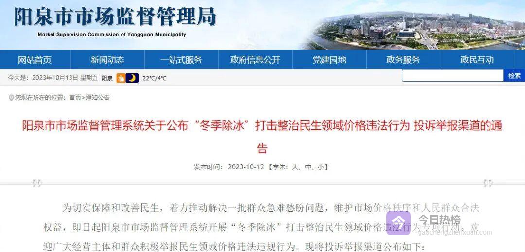 阳泉市市场监督管理局提醒:冬季寒冷,但执法温暖;民生领域,一个乱价行为也难逃法眼。让我们携手并肩,让价格回归合理,让民生更有温度!