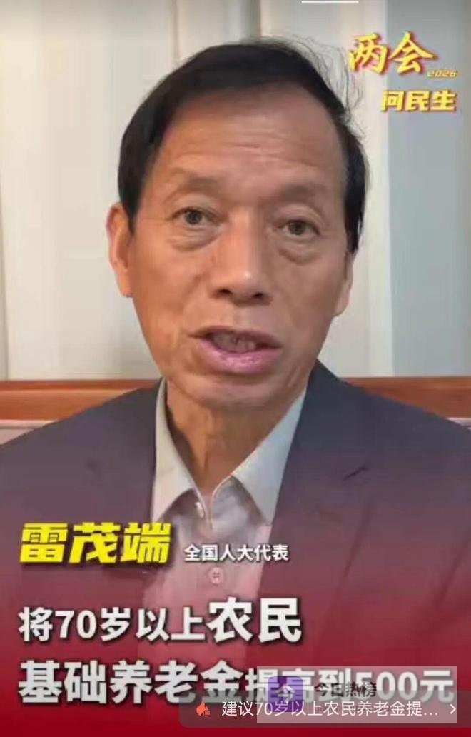 不光如此,还有代表关注到农村老年群体,建议将70岁以上农民基础养老金提高到每月500元。