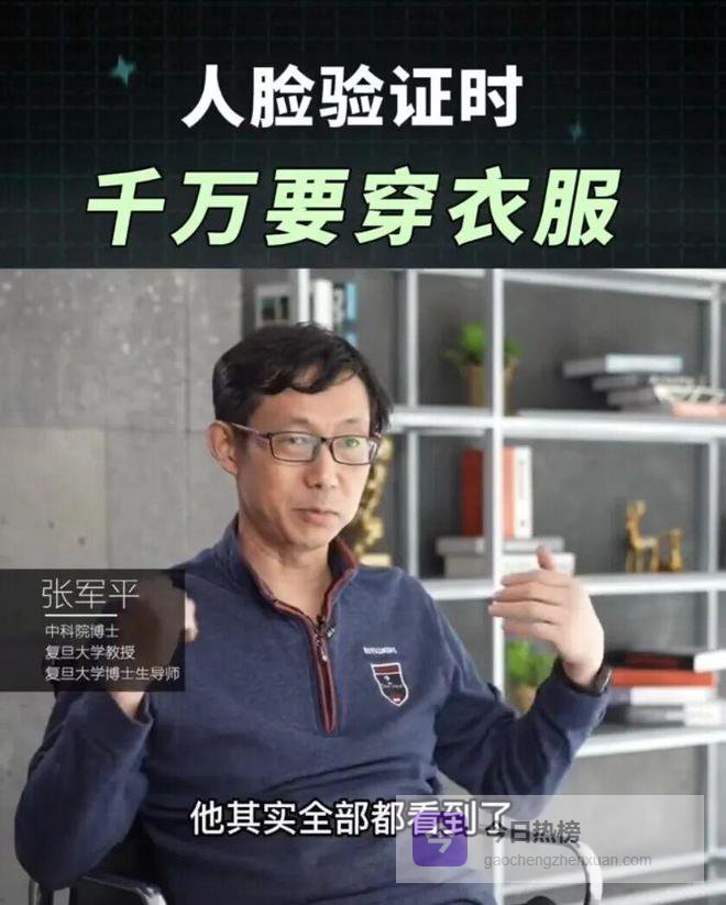 在那条5年前的科普视频中,张军平教授提醒大家,千万不要在洗澡的时候去做人脸认证。他说:“你确确实实要把衣服穿好,摄像头并不是只看到圆的这一块的内容,它其实全部都看到了,所以洗澡的时候不要去做人脸认证。”