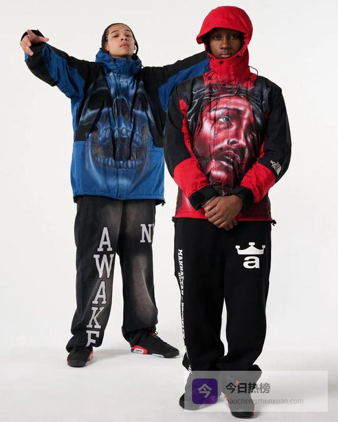 Awake NY 发布 2026 春夏系列,邀请纽约艺术家 stfuyoutalk2much 参与创作,将其融合流行文化与讽刺意味的喷绘风格注入与 THE NORTH FACE 联名的冲锋衣设计中,呈现切·格瓦拉肖像、骷髅图案及耶稣形象等视觉元素。