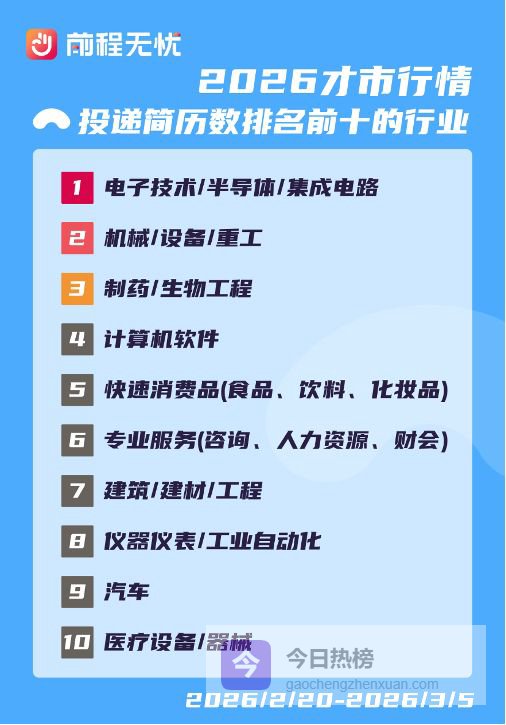 纵观历年职场规律,春节长假复工初期,往往是全年人才市场求职活跃度与投递意愿的双重高峰期。在这一关键节点,个人求职端的市场触觉往往先于企业端苏醒。聚焦节后求职黄金窗口,前程无忧51job的数据显示,以硬核科技为代表的战略性新兴产业正成为吸纳人才的主阵地,而求职者的整体心态已步入理性与务实的新阶段。