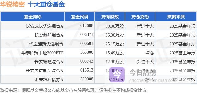 重仓华锐精密的公募基金请见下表: