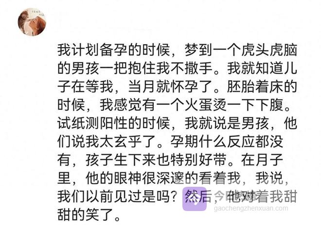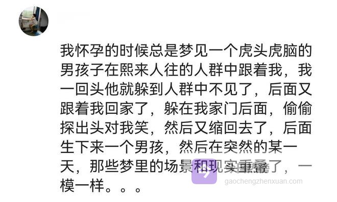 我老婆怀孕期间梦到一个大胖小子,结果真就一个儿子,更牛逼的是,我老婆梦里问他你是谁啊?我儿子说我叫一一啊,这还给自己起小名的,这你受得了吗