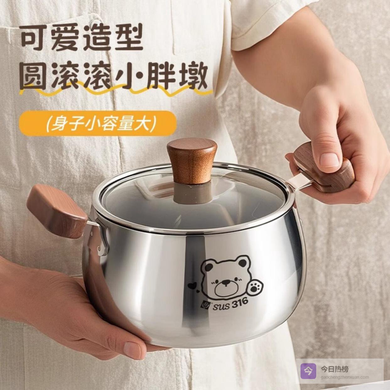 【品牌直营】国风316不锈钢小汤锅家用迷你炖锅加厚煮锅燃气电磁炉用宝宝辅食小锅【抗菌316】木柄奶锅¥