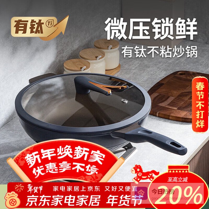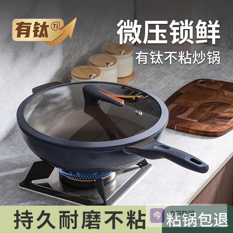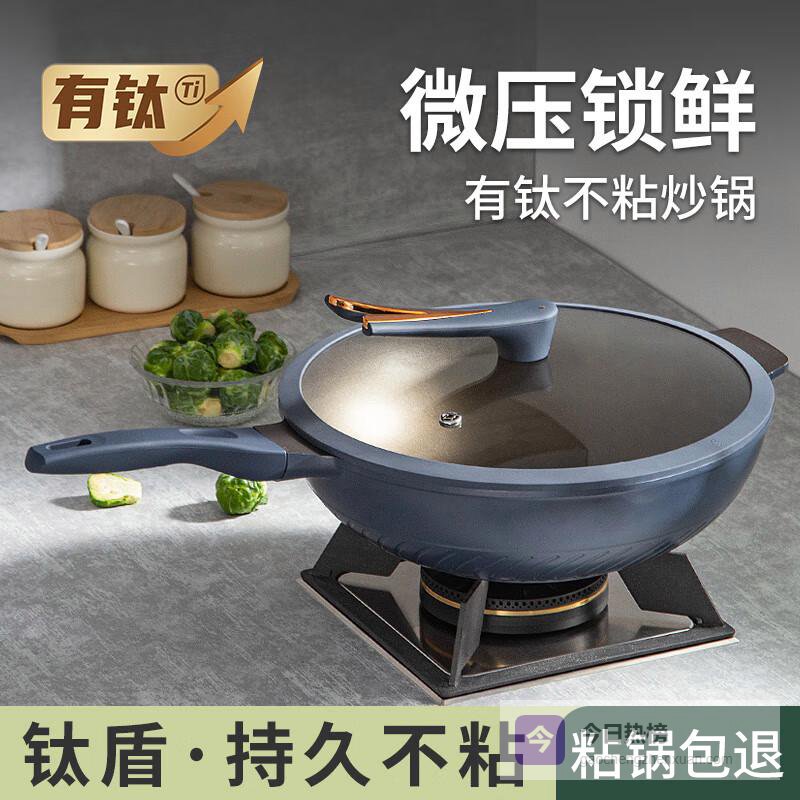 【品牌直营】国风炒锅有钛不粘锅家用炒菜锅电磁炉燃气灶平底锅钛锅有钛不粘微压炒锅34cm¥