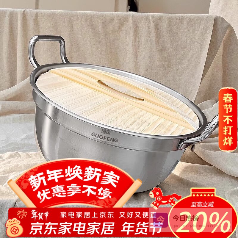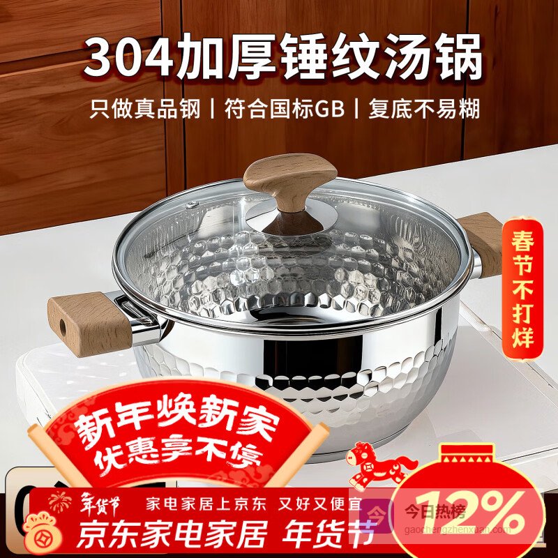 【京东自营】国风304不锈钢汤锅防烫手柄加厚复底汤锅22CM家用炖锅煮锅燃气电磁炉¥