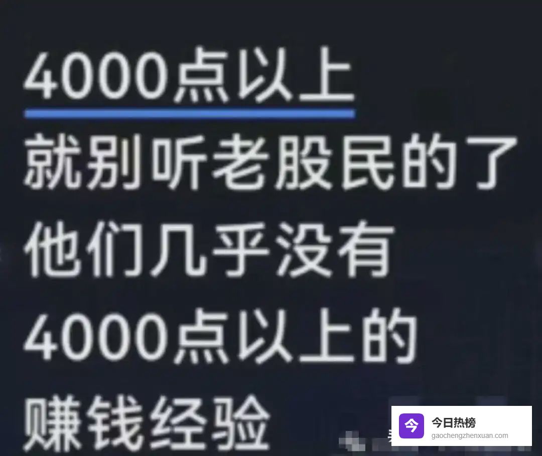 最近投资圈里面最火的一个段子,说的是上4000点以后就不要听老股民的了。